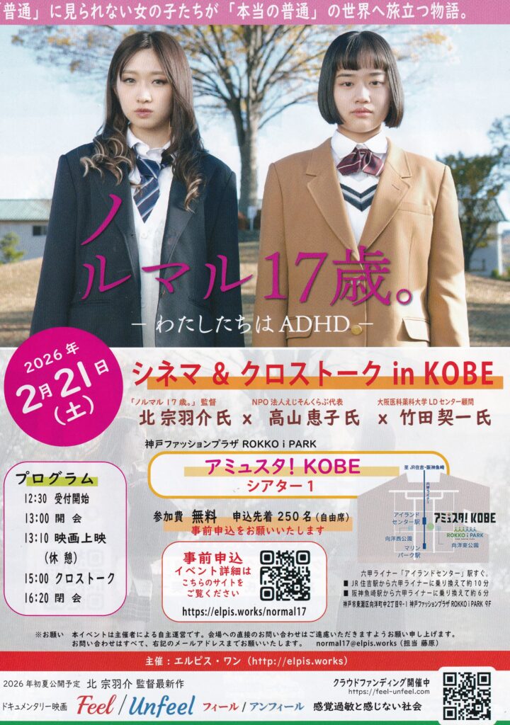【2/21神戸・無料】映画『ノルマル17歳。ー私たちはADHDー』上映会&クロストーク|発達障害・ADHD