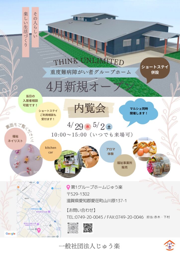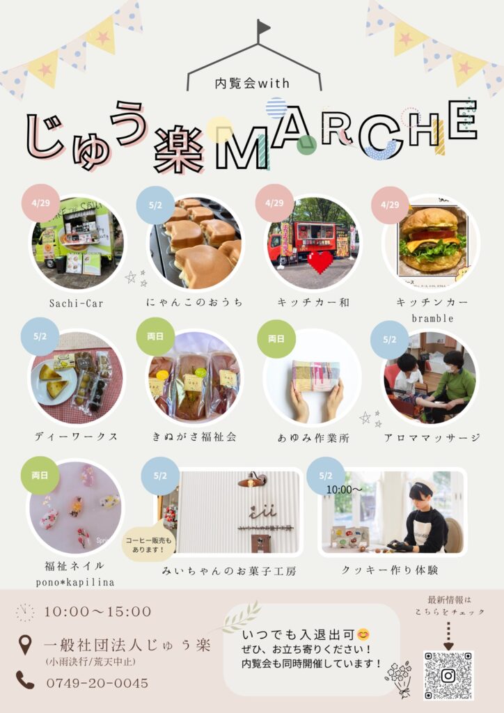 5月2日イベント出店(滋賀) 2026/05/02(土)滋賀県愛荘町にてイベント出店します♪ みいちゃんのスイーツ体験教室 焼き菓子・ケーキ販売 遊びに来てくださいね。 <開催場所> 滋賀県愛知郡愛荘町山川原137-1 じゅう楽 第1グループホーム BACK 一覧へ NEXT ニュース一覧へ メディア一覧へ