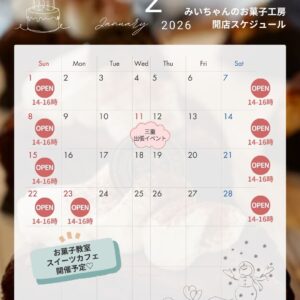 11月30日(日)11:00~14:00 みいちゃんの教室を開催しました。 この教室は、お菓子を...